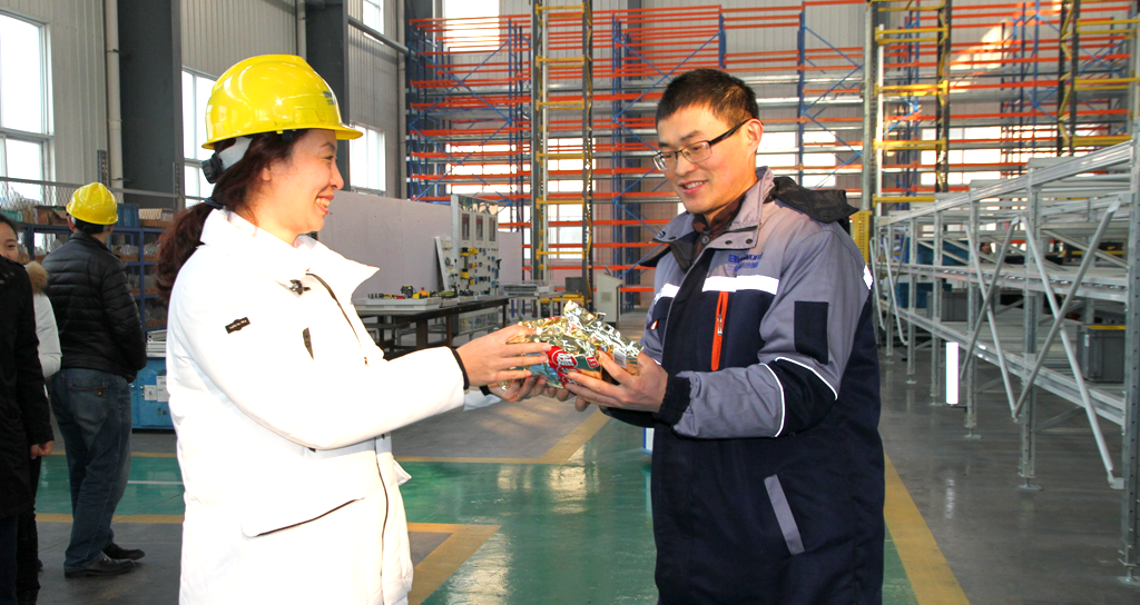 交流竣事后,J9九游会总部到访职员划分走访三大车间、六大部分,来到每个员工眼前,亲自为他们送上新年礼物。
